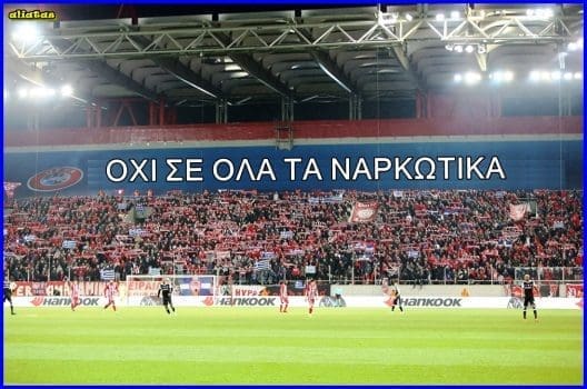 - Εκεί ψηλά στη θύρα 7 που ήταν το πανό «No Racism» στον αγώνα με την Μπεσίκτας, στα εγχώρια παιχνίδια του ολυμπιακού θα μπει ένα που θα λέει «Όχι σε όλα τα ναρκωτικά».