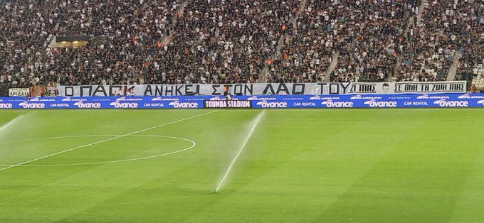 Ξαδέλφια μου ΠΑΟΚτζήδες αυτό είναι το μισό σύνθημα, το άλλο μισό που είναι; Και σε ποιον πρόεδρο απευθύνεστε; Στον ιδιοκτήτη της ΠΑΕ η σε αυτόν που αγόρασε τον Α.Σ.; Να τα ξεκαθαρίζετε αυτά τα πράγματα να μην έχουμε απορίες.