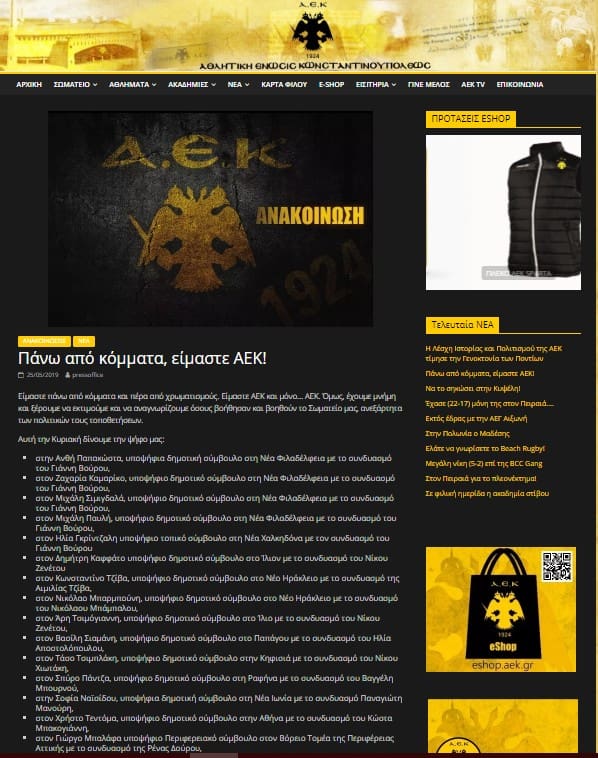 Στη σχετική λίστα ΔΕΝ είναι ο Λύσανδρος Γεωργαμλής. Το γιατί το ξέρουν καλύτερα οι διοικούντες της ΑΕΚ που έβγαλαν την ανακοίνωση. Πως και γιατί κόπηκε ο Γεωργαμλής, ένας άνθρωπος με πορεία όχι μόνο στην ΑΕΚ αλλά και στον Δήμο Φιλαδέλφειας – Χαλκηδόνας. Ο εκλεκτός της ΑΕΚ στις προηγούμενες εκλογές. Κόπηκε… Γιατί; Ντροπής πράγματα…