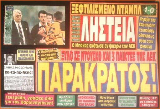 - Γίνονται όμως κάτι κολοτούμπες στο ποδόσφαιρο των αφεντικών… Ποιος να το έλεγε τη δεκαετία 80 – 90 ότι κάποτε ο Γιώργος Βαρδινογιάννης θα μπορεί να παρακολουθεί αγώνες της ΑΕΚ ανενόχλητος και δεν θα μπορεί να βλέπει χωρίς γιούχα τον Παναθηναϊκό.