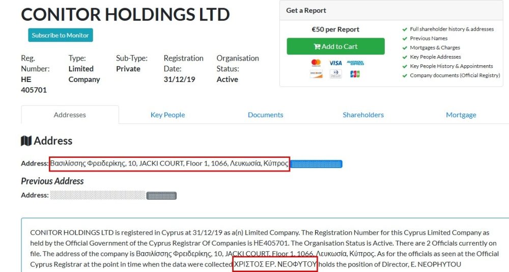 Εταίρος και μοναδικός διαχειριστής της εταιρίας με το όνομα της ΑΕΚ είναι η Conitor Holdings Limited με έδρα τη Λευκωσία στη διεύθυνση Βασιλίσσης Φρειδερίκης 10. Υπεύθυνος είναι ο Χρίστος Νεοφύτου, άτομο που δεν τον γνωρίζουμε και δεν τον έχουμε ακούσει ποτέ στην ΑΕΚ…
