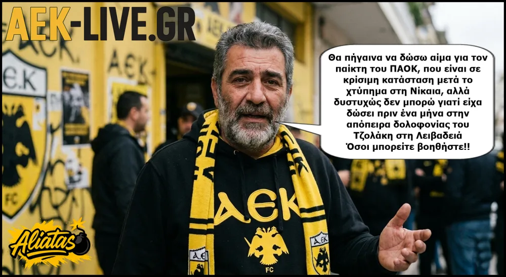 ΦΟΥΣΚΕΣΠάντα ψυχάρες οι ΑΕΚτζήδες Published 2 μήνες agoon 5 Μαρτίου 2026By Παναγιώτης Αλιατάς Views 377 Related Topics: Up NextΣΟΚ: Εντοπίστηκε αυτός που σφύριζε από την εξέδρα – Δείτε ποιος είναι… Don't MissΕνάντια στο πρωινό ξύπνημα Παναγιώτης Αλιατάς Continue Reading Advertisement You may like