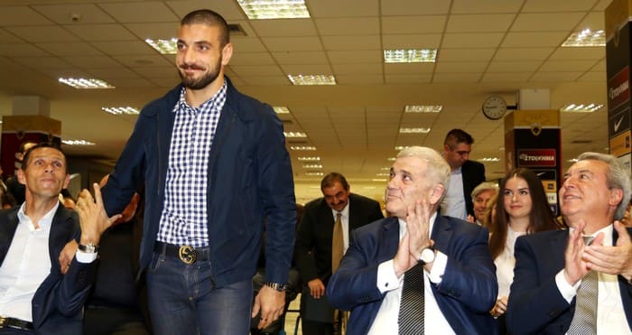 Ιδιαίτερη υποδοχή επεφύλαξαν οι παλαίμαχοι της ΑΕΚ στον Δημήτρη Μελισσανίδη κατά την άφιξή του στην γιορτή της κοπής της πίτας του Συνδέσμου.