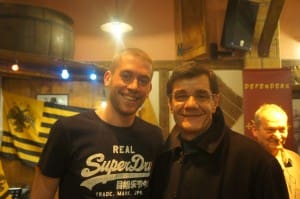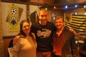 Η εκδήλωση πραγματοποιήθηκε στο μουσικό στέκι «Εν Μοσχάτω» και ο αμυντικός της ΑΕΚ έγινε δεκτός από τους Defenders με μεγάλο ενθουσιασμό. Μικροί και μεγάλοι έτρεξαν κοντά του για να του μιλήσουν, να του ζητήσουν νίκη – πρόκριση επί του Ολυμπιακού και να φωτογραφηθούν με το νέο αστέρι της Ένωσης.