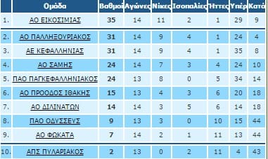 Η ΑΕ Κεφαλονιάς βρίσκεται σε τροχιά τίτλου στο πρωτάθλημα της 1ης κατηγορίας της ΕΠΣ Κεφαλληνίας – Ιθάκης. Δείτε τη βαθμολογία μετά από 14 αγωνιστικές.