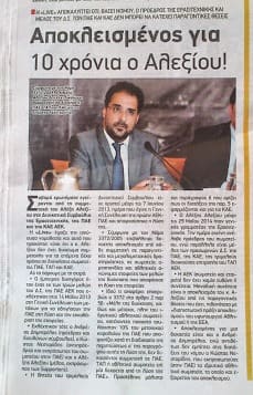 Ο Αλεξίου μαζί με τον Δημητρέλο συμμετείχε στην εκκαθάριση της ΠΑΕ ΑΕΚ.