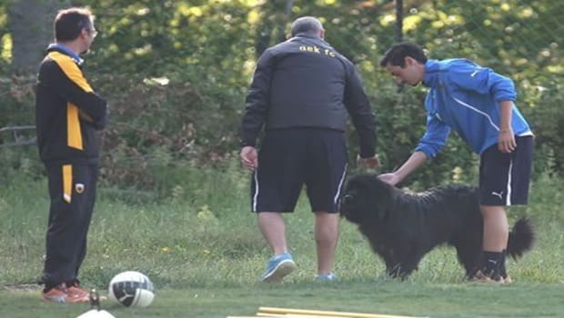 Κατά τη διάρκεια των ασκήσεων ένα σκυλί εισέβαλε στον αγωνιστικό χώρο, με τον Τραϊανό Δέλλα να φωνάζει “έχουμε αμυντικό σκύλο”! Το συμπαθές τετράποδο αποχώρησε μετά από λίγο, αφού πάντως είχε πάρει μυρωδιά από την προπόνηση της ΑΕΚΑΡΑΣ.