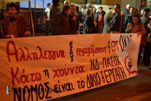 Σήμερα ολοκληρώνεται ένας χρόνος από την εισβολή των ΜΑΤ ,με κυβερνητική εντολή, ώστε να παύσει το δελτίο ειδήσεων της ΕΡΤ, να εκκενωθεί το κτίριο και να μπει λουκέτο στη δημόσια τηλεόραση. Αυτή τη στιγμή βρίσκεται σε εξέλιξη ειρηνική πορεία διαμαρτυρίας έξω από το ραδιομέγαρο της πρώην ΕΡΤ, νυν ΝΕΡΙΤ, στην Αγία Παρασκευή. Προς το παρόν είναι κλειστό το ρεύμα καθόδου της Λεωφόρου Μεσογείων από πρώην εργαζόμενους και πολίτες που θέλουν να διαμαρτυρηθούν.