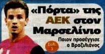 Ο ΤΥΠΟΣ ΓΡΑΦΕΙ... ΓΙΑ ΤΗΝ ΑΕΚΈφαγε πόρτα ο Μαρσελίνιο; Μοιράζει “Χ” η ΑΕΚ… Published 12 έτη agoon 14 Φεβρουαρίου 2014By Παναγιώτης Αλιατάς Views 212Άκυρο από την ΑΕΚ, φαίνεται να “έφαγε” ο Βραζιλιάνος άσσος.Άκυρο έφαγε ο Μαρσελίνιο από την ΑΕΚ σύμφωνα με την εφημερίδα “Γάτα”. Ο Βραζιλιάνος ο οποίος έχει αγωνιστεί στην Ξάνθη, έκανε την προσέγγιση, χωρίς όμως κάποιο αποτέλεσμα. Related Topics: Up NextΤο αμυντικό χαφ που ψάχνουμε… Don't Miss“Θα οδηγήσει την ΑΕΚ ξανά στην κορυφή” Παναγιώτης Αλιατάς Continue Reading Advertisement You may like