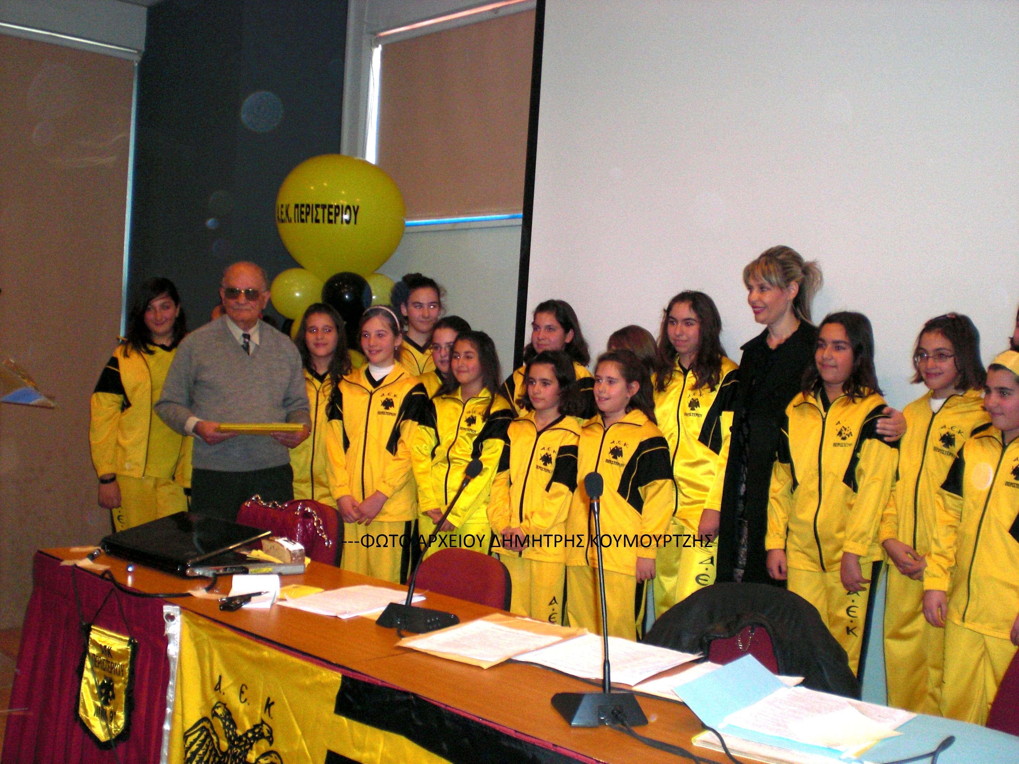 Και θυμήθηκε, ότι τα τμήματα χορού, που είχε δημιουργήσει ο Σύνδεσμος Φίλων ΑΕΚ Περιστερίου, ήταν αυτά που συμμετείχαν στις φιέστες κατακτήσεως Πρωταθλημάτων από την ΑΕΚ στο γήπεδο της Νέας Φιλαδέλφειας τόσο το 1989, όσο και σε αυτά της «δικεφαλικής ηγεσίας» των Μελισσανίδη-Καρρά 1992. 1993 και 1994.