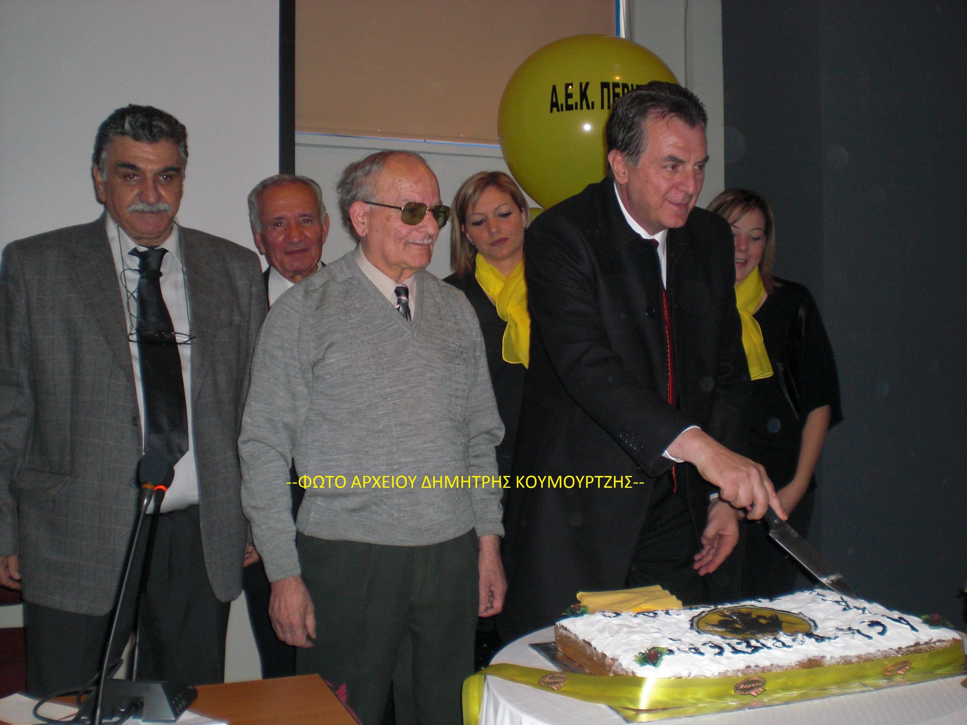Ο Ανδρέας Μάρκος από χορό της ΑΕΚ Περιστερίου δίπλα στον Στέλιο Σεραφείδη και με τους βετεράνους της «Ένωσης» Κωνσταντινίδη, Πεσιρίδη, τον κ. Μήτσουλα και τις συμβίες τους τον αντιδήμαρχο Περιστερίου Βασίλη Λώλο και τον πρόεδρο Θανάση Παπαθάνο.
