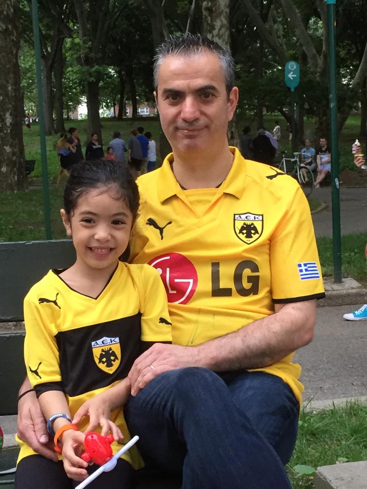 Ο παλιός μάχιμος Ενωσίτης της Νέας Υόρκης Δημήτρης Μακρής, δεν ξεχνά την μεγάλη του αγάπη για την ΑΕΚ και την μεταλαμπαδεύει και στην επόμενη γενιά… Στην φωτογραφία ο Δημήτρης και η πανέμορφη κορούλα του στην Αστόρια, στο θρύλικο πάρκο όπου κάποτε ο ιστορικός Σύνδεσμος Οπαδών ΑΕΚ Νέας Υόρκης έγραφε την δική του ιστορία με αξεπέραστες πορείες και μαζώξεις…