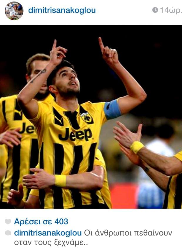 Με τα δυο του χέρια υψωμένα κι έχοντας το βλέμμα στραμμένο προς τον ουρανό, ο Δημήτρης Ανάκογλου αφιέρωσε τα δυο γκολ που πέτυχε απέναντι στα Χανιά, στον πατέρα του που «έφυγε» μέσα στα Χριστούγεννα. «Οι άνθρωποι πεθαίνουν, όταν τους ξεχνάμε» έγραψε ο αρχηγός της ΑΕΚ στον προσωπικό του λογαριασμό στο instagram…