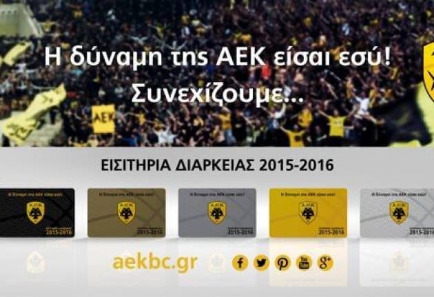 Τα εισιτήρια Διαρκείας διατίθενται ηλεκτρονικά από την επίσημη ιστοσελίδα της ΚΑΕ ΑΕΚ www.aekbc.gr