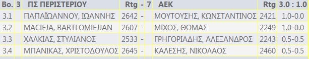 Ισοπαλίες έφεραν στις παρτίδες τους οι Γρηγοριάδης και Καλέσης, ενώ ηττήθηκαν οι Μίχος και Μουτούσης.