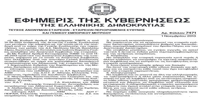 Να όμως τι ισχύει στην πραγματικότητα… Σας παρουσιάζουμε την εφημερίδα της κυβερνήσεως με το τελευταίο δημοσιευμένο πρακτικό για την Γενική Συνέλευση της ΑΕΚ.