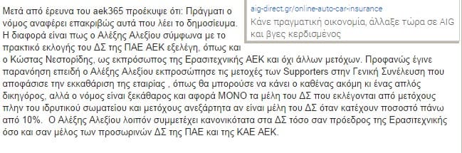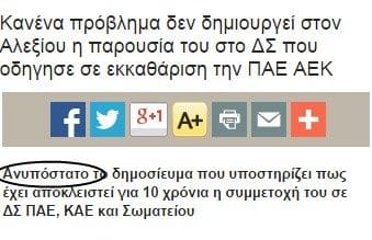 Να θυμηθούμε τι έγραψε το AEK LIVE για το θέμα με τίτλο “Έκπτωτος ο Αλεξίου“.