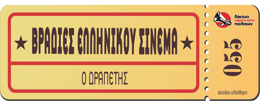 Η Κινηματογραφική Ομάδα του Δικτύου Αφύπνισης Πολιτών συνεχίζει τη δράση “Βραδιές Ελληνικού Σινεμά” που περιλαμβάνει ανοικτές υπαίθριες προβολές κατά την περίοδο του Καλοκαιριού (και όσο ακόμα ο καιρός το επιτρέψει) σε διάφορα σημεία της πόλης της Αμαλιάδας. Η αρχή έγινε πέρσι με την ανοικτή υπαίθρια προβολή ταινίας “Ο ψύλλος” η οποία είχε μεγάλη επιτυχία και έδωσε το έναυσμα για μια δράση αφιερωμένη στον ελληνικό κινηματογράφο.