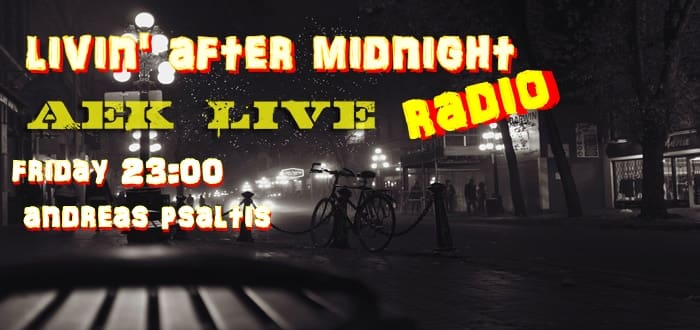 Η απόλυτη Ροκ εκπομπή livin’ after midnight με τον Αντρέα Ψάλτη θα σας κρατήσει συντροφιά μέχρι τα μεσάνυχτα με τρομερές μουσικές και πολύ όμορφες συζητήσεις. Ανοικτό και το chat για τα δικά σας μηνύματα και αφιερώσεις. Μείνετε συντονισμένοι, τουλάχιστον όσοι είστε νυκτόβιο!
