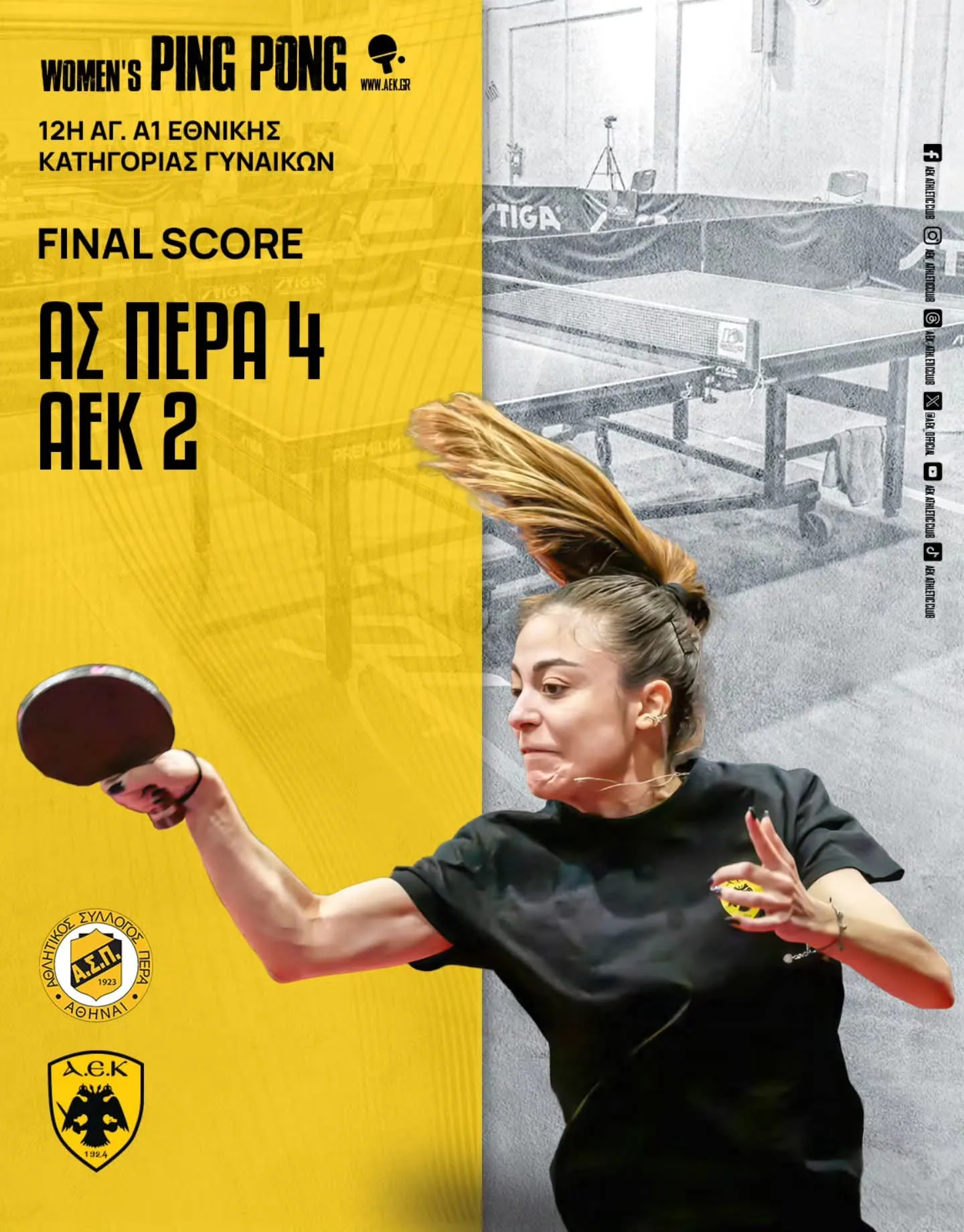 ΕΡΑΣΙΤΕΧΝΙΚΗΔεν τα καταφέραμε Published 2 μήνες agoon 8 Φεβρουαρίου 2026By ΑΕΚ LIVE Views 24Ήττα για την ομάδα Πινγκ Πονγκ Γυναικών από τον ΑΣ Πέρα στο πλαίσιο της 12ης αγωνιστικής του πρωταθλήματος Related Topics: Up Next6ος ο Σάντας Don't MissΔυστυχώς… Ήττα από το Χαϊδάρι ΑΕΚ LIVE Continue Reading Advertisement You may like