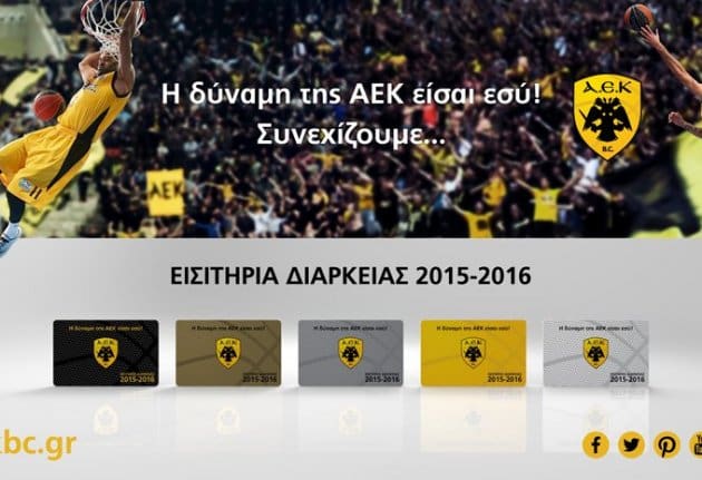 Για την διασφάλιση του εισιτηρίου κρίνεται αναγκαία η φυσική παρουσία του φοιτητή – σπουδαστή με επίδειξη της (πανεπιστημιακής) ταυτότητας ΑΕΙ και ΤΕΙ, στο Γραφείο της ΚΑΕ ΑΕΚ, στο χώρο του Κλειστού του ΟΑΚΑ (αριθμός γραφείου 2220, είσοδος VIP) από 17/07/2015, από τις 11:00 έως τις 17:00 (Δευτέρα έως Παρασκευή).
