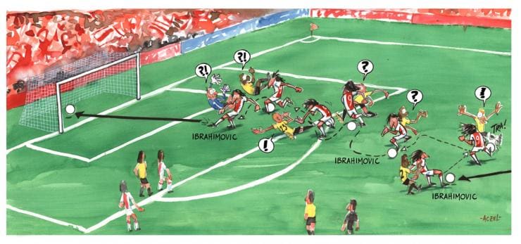 Πέρασα δύο φορές τον ίδιο παίκτη. Παλιότερα ήμασταν συμπαίκτες, όμως δεν το είχα καταλάβει εκείνη τη στιγμή. Μου είπε: «Ζλάταν, νόμιζα ότι είμαστε φίλοι». Του ζήτησα συγνώμη, καθώς δεν κατάλαβα ότι ήμασταν κάποτε συμπαίκτες. Ήταν το καλύτερό μου γκολ. Δε με ένοιαζε η αντίδραση του Φαν Ντερ Φάαρτ. Ήταν δικό του πρόβλημα. Την επόμενη μέρα υπέγραψα στην Γιουβέντους».