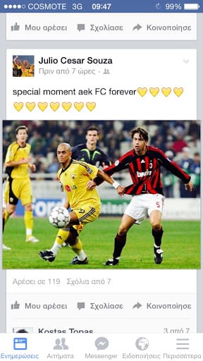 Τι και αν έχουν πεεράσει αρκετά χρόνια από τότε που φορούσε την φανέλα της ΑΕΚ…Ο Ζούλιο Σέζαρ θυμάται ακόμη την Ένωση και το αποδεικνύει για ακόμη μία φορά, με μια πολύ χαρακτηριστική ανάρτηση από την μεγάλη νίκη της ΑΕΚ επί της Μίλαν, με δικό του μάλιστα γκολ, όπως όλοι θυμόμαστε…