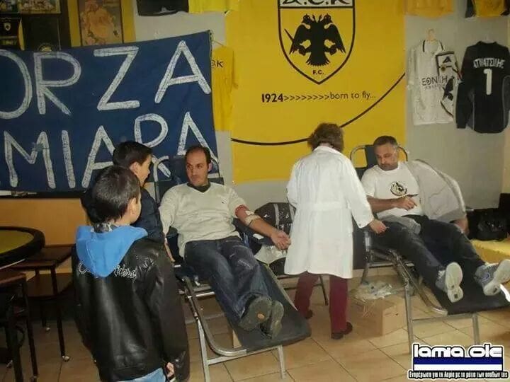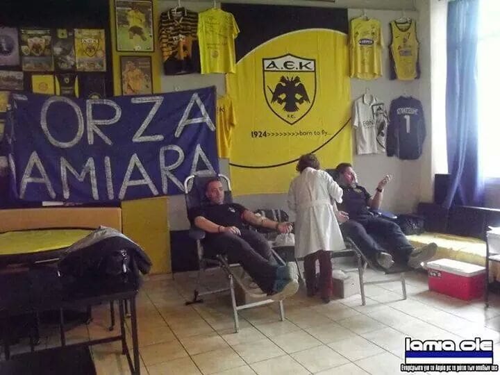 Ο Σύνδεσμος Φιλάθλων ΑΕΚ Λαμίας και η Πανελλήνια Λέσχη Φίλων Λαμίας διοργάνωσαν την Κυριακή 16 Νοεμβρίου εθελοντική αιμοδοσία. Εξαιρετική κίνηση που δείχνει για ακόμα μία φορά πως η ΑΕΚ δεν είναι μόνο ένας σύλλογος που παίζει κάθε Κυριακή, αλλά κάτι πολύ περισσότερο.