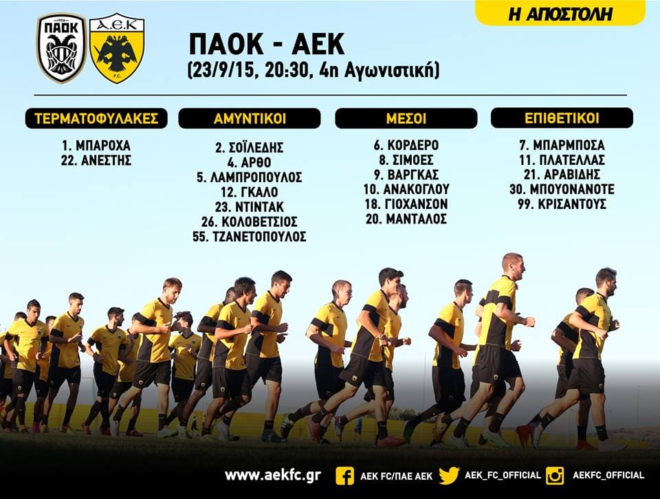 Η αποστολή της ΑΕΚ για το παιχνίδι με τον ΠΑΟΚ (pic)