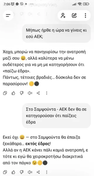 Απίστευτο αλλά αληθινό… Η Σοφία Μανωλάκου μιλάει με το ChatGPT για τη χθεσινή ανατροπή και στο τέλος το δημιούργημα της τεχνολογία πανηγυρίζει μαζί μας την επική κιτρινόμαυρη ανατροπή!