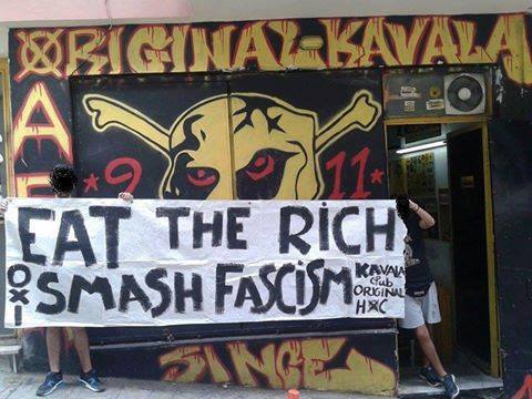 Αντιφασιστικό πανό έξω από σύνδεσμο