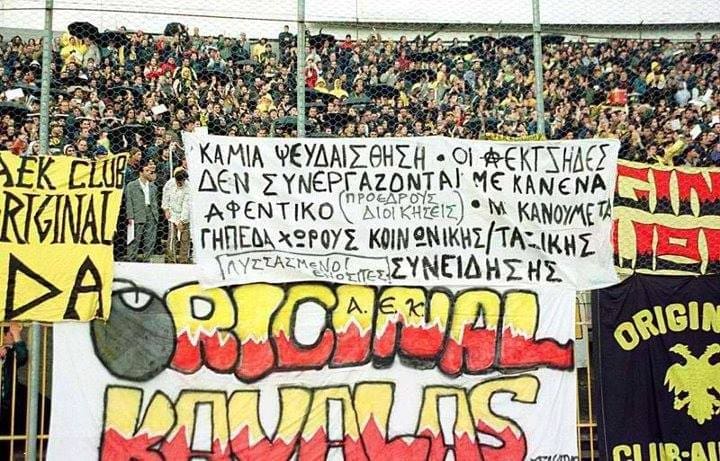 Έξι χρόνια μετά τη δολοφονία του Παύλου Φύσσα και του Σαχζάτ Λουκμάν, οι νεοναζί της Χρυσής Αυγής έμειναν έξω από το κοινοβούλιο. Πρόκειται για μια πολύ σημαντική εξέλιξη και ελπίζουμε σύντομα να αποτελέσουν οριστικά παρελθόν και από τις κερκίδες στις οποίες βρίσκουν ανοχή. Ο λαός της ΑΕΚ έχει επανειλημμένως πάρει θέση απέναντι στο φασισμό και στο ρατσισμό τόσο εντός όσο και… εκτός γηπέδων. Η αδελφοποίηση άλλωστε των οργανωμένων οπαδών της με τους αντιφασίστες της Μαρσέιγ και της Λιβόρνο, οι δράσεις αλληλεγγύης στους πρόσφυγες και η ευθεία αντιπαράθεση με τη Χρυσή Αυγή το αποδεικνύουν εμπράκτως. Η ΑΕΚ είναι προσφυγική ομάδα και είναι στη φύση της η αλληλεγγύη στους πονεμένους και κατατρεγμένους αυτού του πλανήτη.