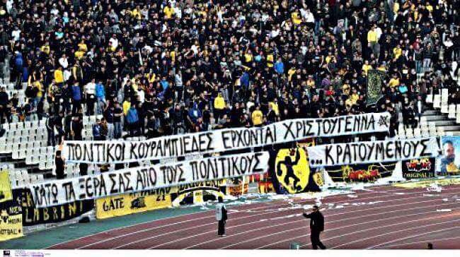Η κερκίδα της ΑΕΚ ενάντια στο no politica