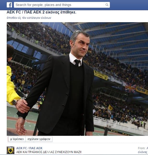 ΠΟΔΟΣΦΑΙΡΟΗ ΠΑΕ ΑΕΚ επιβεβαιώνει την παραμονή Δέλλα Published 11 έτη agoon 11 Ιουνίου 2015By Παναγιώτης Αλιατάς Views 326Με ανάρτηση στα Social Μedia, η ΠΑΕ ΑΕΚ ουσιαστικά ανακοίνωσε τη συνέχιση της συνεργασίας με τον Έλληνα τεχνικό.«ΑΕΚ ΚΑΙ ΤΡΑΪΑΝΟΣ ΔΕΛΛΑΣ ΣΥΝΕΧΙΖΟΥΝ ΜΑΖΙ!», αναφέρει η ανάρτηση της ΠΑΕ ΑΕΚ, την οποία μπορείτε να δείτε παρακάτω: Related Topics: Up NextΈσκασε και η επίσημη ανακοίνωση για Δέλλα! Don't MissΑΕΚ και Δέλλας μαζί στη Super League Παναγιώτης Αλιατάς Continue Reading Advertisement You may like
