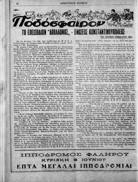 Δείτε τι γράφει για τον αγώνα, το εβδομαδιαίο περιοδικό “Αθλητικός Κόσμος” στο φύλλο της Κυριακής 23 Μαϊου 1926.