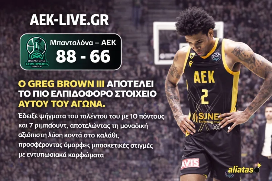 Παρά την ήττα της ΑΕΚ στη Βαρκελώνη, ο Greg Brown III αποτέλεσε το πιο φωτεινό σημείο του αγώνα.
