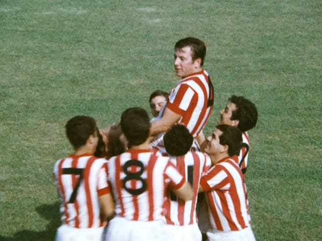 Παλαιότερα πάντως είχε γίνει ακόμα μία μεγάλη κλοπή που λίγοι τη θυμούνται. Μας είχαν αρπάξει τον δικό μας Κώστα Βουτσά, ο οποίος στην ταινία “Μια κυρία στα μπουζούκια” φόρεσε Ερυθρόλευκη φανέλα και μπήκε στο γήπεδο για να αγωνιστεί!!Καλά δεν μπορούσαν να βρουν έναν αυθεντικό γαύρο για τον ρόλο;