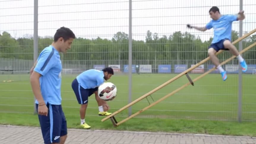 Αυτή την φορά ήταν σειρά ενός συμπαίκτης του στη Ζενίτ του καθόταν ανυποψίαστος σε έναν πάγκο. Τότε εμφανίζεται ο Βραζιλιάνος, που απλώς θέλησε να δέσει τα κορδόνια του. Το αποτέλεσμα στο βίντεο:
