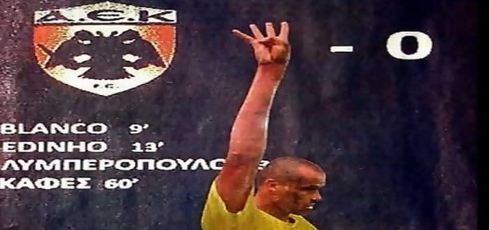 Το ΟΑΚΑ κατάμεστο από νωρίς. Εγώ 6 μηνών έγκυος, ο κουμπάρος δίπλα (ένα μήνα πριν είχε κάνει τριπλό bypass), παραδίπλα το βαφτιστήρι 8 ετών. Και ξεκινά το μπαλέτο, 10ο λεπτό Μπλάνκο 1-0, 12ο λεπτό Εντίνιο 2-0, 32ο Λύμπε 3-0 και 60ο Καφές 4-0.