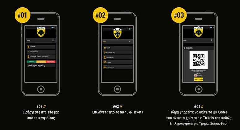 Το on line σύστημα λειτουργεί από την επίσημη ιστοσελίδα μας (www.aekfc.gr) όλο το 24ωρο και η προπώληση γίνεται μέσω internet με τη χρήση Η/Υ ή mobile συσκευών (tablet και smartphone κινητών). Η online πώληση αφορά μόνο τα κανονικά εισιτήρια (ενηλίκων) σε όλες τις θύρες προς πώληση εκτός από τις συνδεσμιακές (1, 15, 35) και πρόκειται να ολοκληρωθεί την ημέρα του αγώνα στις 15:45.