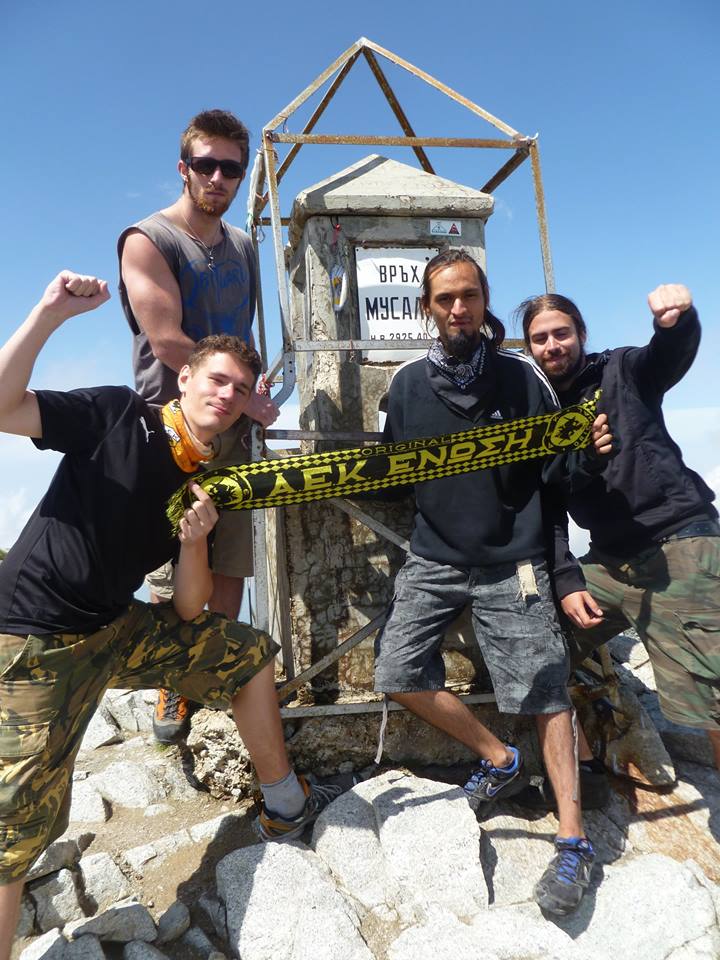 Ρίλα-Βουλγαρία, υψόμετρο 2925. Μια παρέα τρελών Ενωσιτών ορειβατών σκαρφάλωσε στην κορυφή των Βαλκανίων. Ο δικέφαλος πέταξε ψηλά κοντά στα ουράνια. Η τρελή παρέα της ΑΕΚ, ο Γιάννης, ο Κώστας, ο Πέτρος και ο Μιχάλης έγραψαν ιστορία… Μπράβο ρε μάγκες…