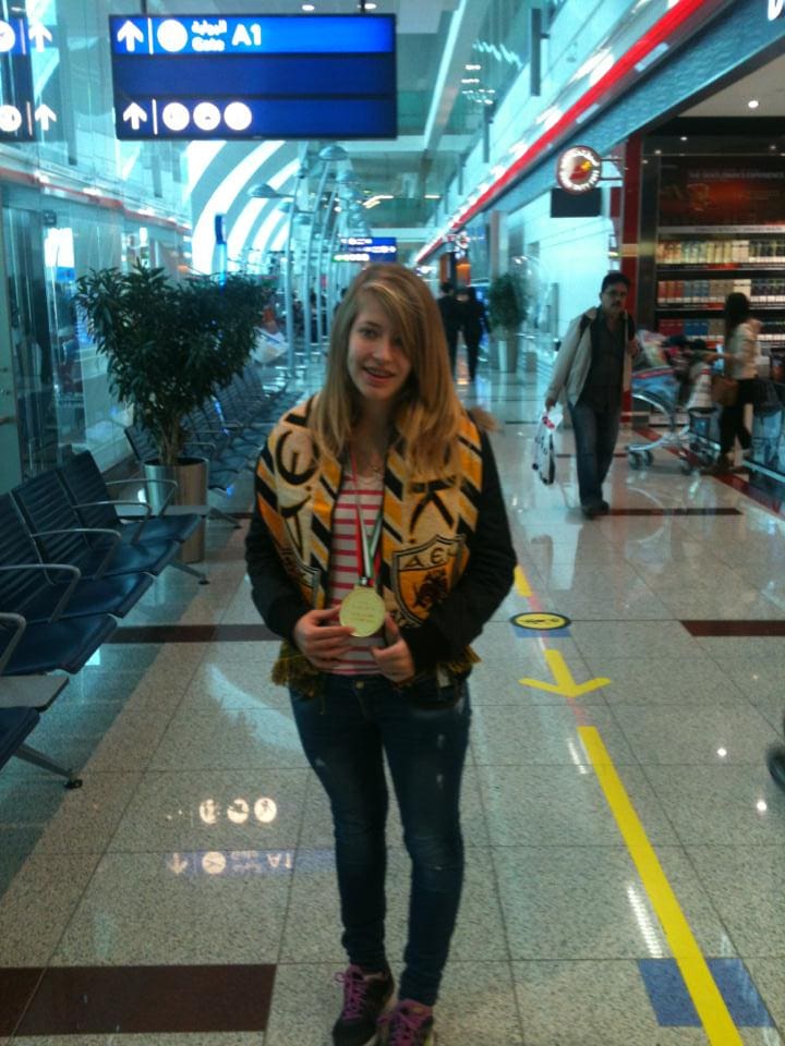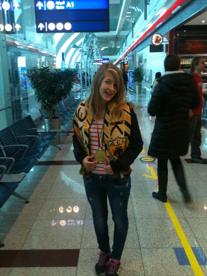 Λίγο πριν αναχωρήσει από τα Εμιράτα η Παγκόσμια Σταυρούλα Τσολακίδου, φωτογραφήθηκε με το κασκόλ της αγαπημένης της ομάδας της ΑΕΚ. Φορώντας και το μετάλλιο της Παγκόσμιας Πρωταθλήτριας. Της ευχόμαστε και Παγκόσμια πρωταθλήτρια στην κατηγορία των γυναικών.
