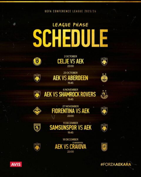 ΜΕ ΕΝΔΙΑΦΕΡΟΝΟι ημερομηνίες των ευρωπαϊκών αγώνων της ΑΕΚ Published 8 μήνες agoon 31 Αυγούστου 2025By ΑΕΚ LIVE Views 186 Related Topics: Up NextΤρέλα του Μίλτου Πασχαλίδη για ΤΑ ΠΑΙΔΙΑ ΤΗΣ ΞΕΝΙΤΙΑΣ Don't MissΟ Κόσμος της ΑΕΚ ΑΕΚ LIVE Continue Reading Advertisement You may like