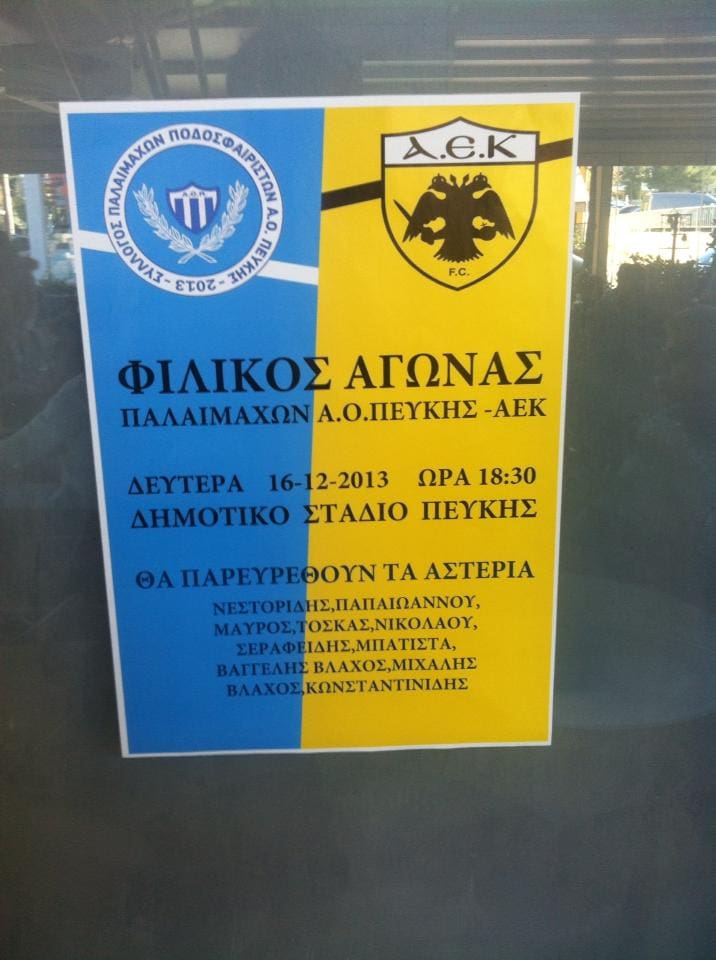 Φιλανθρωπικό αγώνα στην Πεύκη θα δώσουν το απόγευμα της Δευτέρας (16/12) οι βετεράνοι της ΑΕΚ!