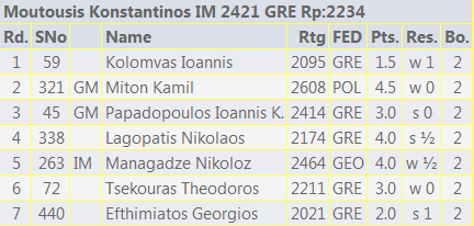 Δυστυχώς ο Κώστας στην 2η σκακιέρα της ομάδας, είχε ένα άσχημο τουρνουά. Πρώτη φορά στα χρόνια που φοράει τα κιτρινόμαυρα, η απόδοσή του ήταν κατά πολύ κάτω από το διεθνές του ELO (-187 βαθμοί). Αντιμετώπισε 2 GM και 1 IM και έκανε σε 7 αγώνες, 2 νίκες, 2 ισοπαλίες και 3 ήττες. Σίγουρα ήταν μια άσχημη παρένθεση η εν λόγω παρουσία του, αφού στο παρελθόν, τις περισσότερες φορές, τραβούσε στις πλάτες του την ομάδα. Πάνω του θα στηριχθεί η νέα ΑΕΚ του 2015.