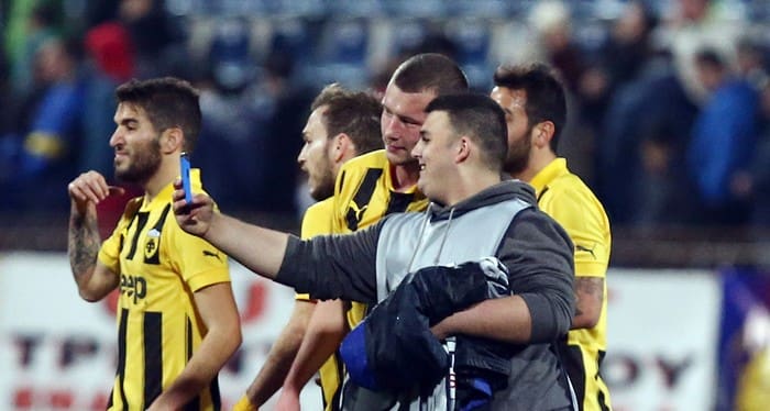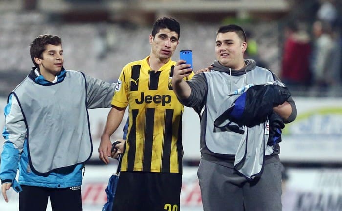 Με γκολ του Γιάκομπ Γιόχανσον, η ΑΕΚ πήρε ισοπαλία 1-1 στην Κέρκυρα και ανέκτησε προβάδισμα πρόκρισης στους “8” του Κυπέλλου Ελλάδας. Αμέσως μετά το τέλος του αγώνα, ένα απ’τα ball boy δεν δίστασε να βγάλει selfie με τον πρωταγωνιστή της Ένωσης. Ωστόσο δεν έμεινε μόνο στον ΣΟυηδό, αφού φωτογραφήθηκε και με τον Μάνταλο, ο οποίος σήμερα, όπως και στην Καισαριανή ήταν εγκλωβισμένος.
