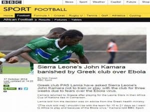 Μέχρι το παγκόσμιας φήμης ειδησεογραφικό πρακτορείο, BBC, έφτασε η χάρη της Λαμίας (με την οποία η ΑΕΚ έπαιξε φιλικό) και του Τζον Καμαρά εξαιτίας της πρότασης -όπως ισχυρίζονται οι Βρετανοί δημοσιογράφοι- της διοίκησης της ελληνικής ομάδας στον Αφρικανό ποδοσφαιριστή να μείνει μακριά από τις υποχρεώσεις της Λαμίας για τουλάχιστον ένα εικοσαήμερο υπό τον φόβο του θανατηφόρου ιού Έμπολα!