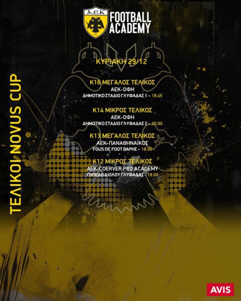 Την πρώτη θέση στους ομίλους τους κατέλαβαν όλες οι ομάδες της ΑΕΚ που συμμετέχουν στο εορταστικό τουρνουά αναπτυξιακού ποδοσφαίρου NOVUS CUP, το οποίο διεξάγεται σε γήπεδα των νοτίων προαστίων της Αττικής.