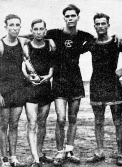 Στην φωτογραφία οι τέσσερις αθλητές – πρωταθλητές της Αθλητικής Ενώσεως Κωνσταντινουπόλεως… Μαυροσκορδάτος, Μπέης, Γεωργακόπουλος και Καλυβιάτης.