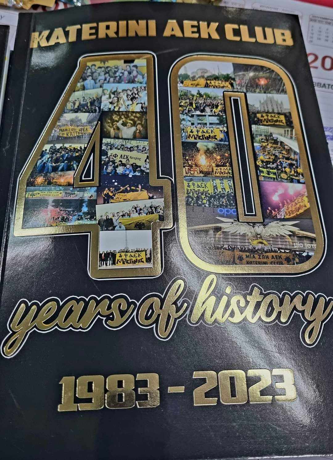 ΚΥΚΛΟΦΟΡΗΣΕ η πρωτοποριακή, για την Συνδεσμιακή οικογένεια της ΑΕΚ, αλλά και για το Πανελλήνιο φάσμα του σχετικού χώρου, 224σελιδη έκδοση του «ΚΑTERINI AEK CLUB 40 years of history 1983-2023», που επιμελήθηκε ένας από τους κορυφαίους Έλληνες αθλητικούς συντάκτες ΔΗΜΗΤΡΗΣ ΠΑΛΑΜΙΔΑΚΗΣ, σε πρωτοβουλία του κ. ΒΑΪΟΥ ΧΑΡΙΣΟΠΟΥΛΟΥ, δημιουργού του Ολύμπιου Συνδέσμου Κατερίνης και άοκνου «ιεροκήρυκα» της «Ενωσίτικης Ιδέας σε όλα τα μήκη και τα πλάτη, εντός κι εκτός της πατρίδας μας! Τα πολλά και γεμάτα από πιστούς, ταξιδιωτικά πούλμαν του, έχει χαρακτηρίσει τον καταπληκτικό Σύνδεσμό σαν «Ένα από τους «Απόστολους» στην εξάπλωση της ΑΕΚθρησκείας ολούθε»!